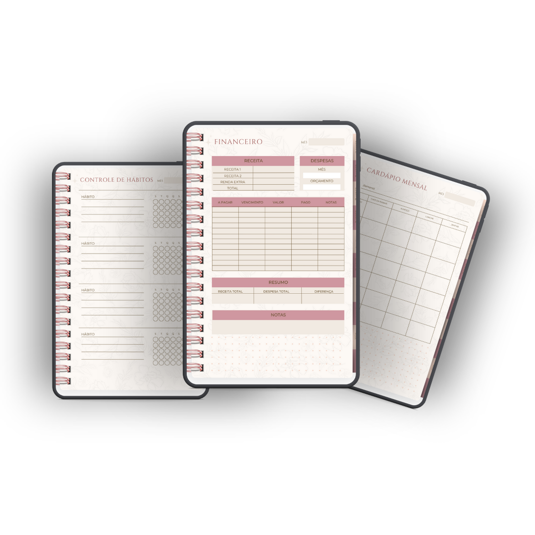 Um caderno elegante e funcional para organizar pensamentos, metas, emoções e planos, o espaço onde a mente de mãe encontra paz e clareza.