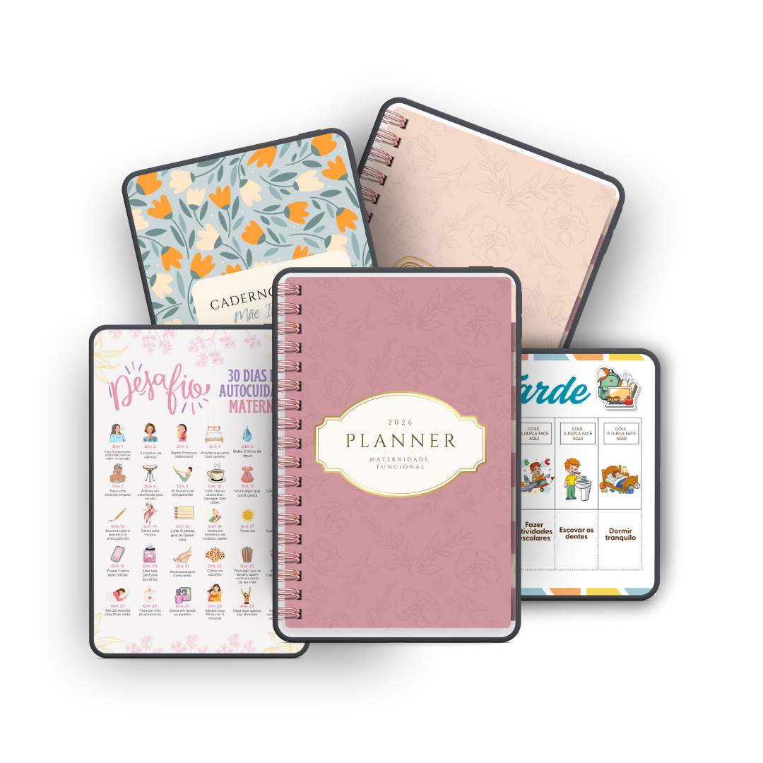 Um caderno elegante e funcional para organizar pensamentos, metas, emoções e planos, o espaço onde a mente de mãe encontra paz e clareza.