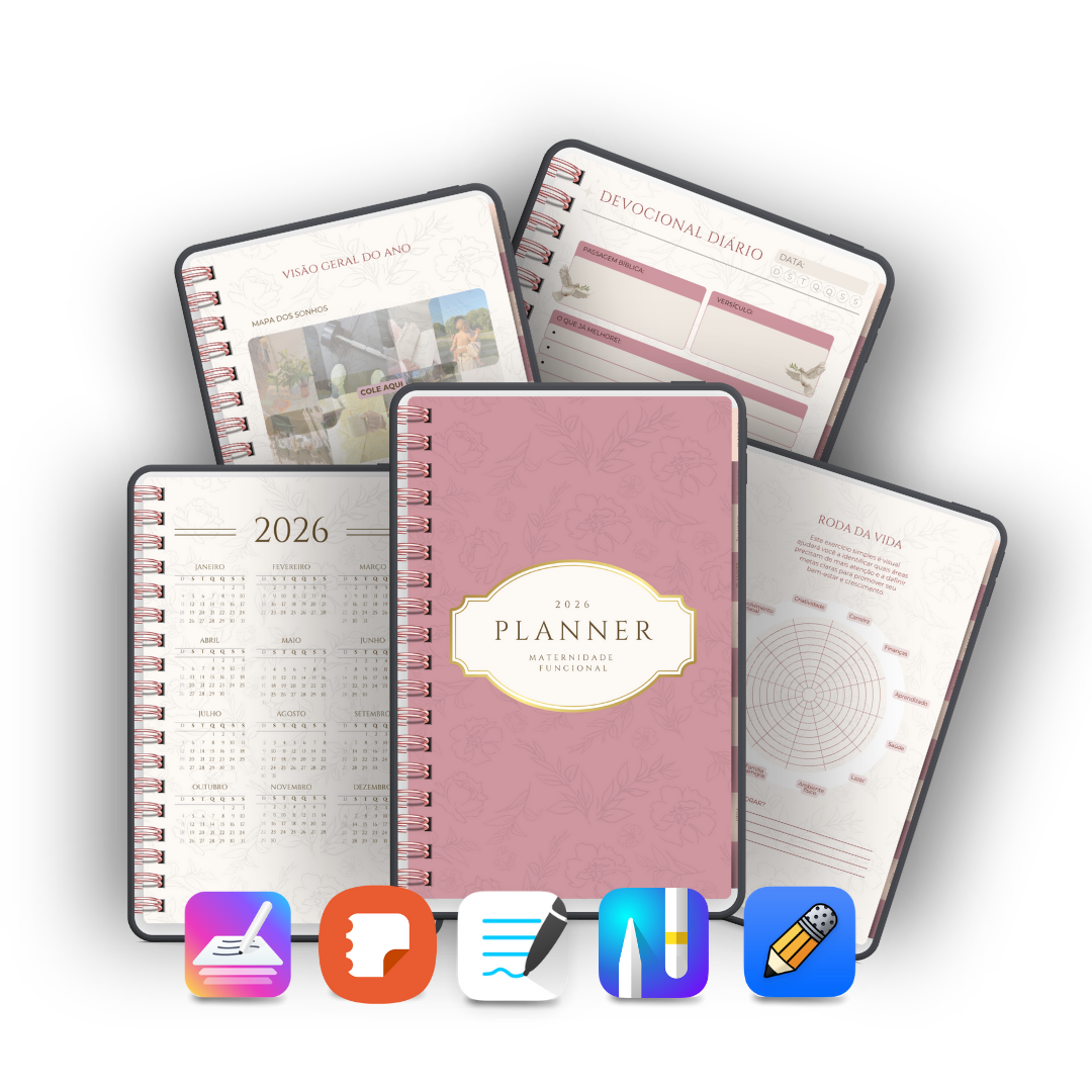 Planner Maternidade Funcional™ — o sistema que te ajuda a sair do modo “sobrevivência” e viver com mais presença, propósito e organização.